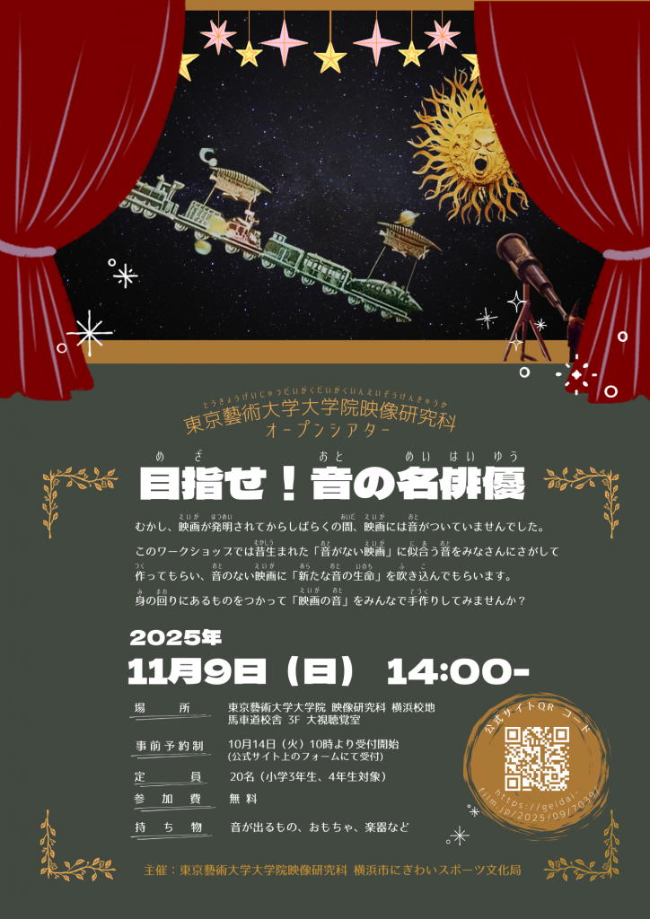※本講座は、東京藝術大学大学院映像研究科と横浜市にぎわいスポーツ文化局が連携して行う地域貢献事業です。