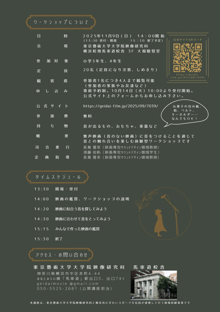 問い合わせ先:東京藝術大学大学院映像研究科 geidaimovie@gmail.com / 050-5525-2681(公開講座担当)